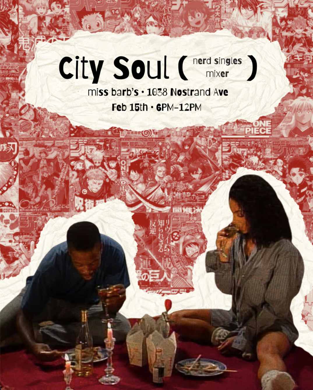 This night is curated for nerds of all fandoms to meet singles of similar interests. Come date-ready to mingle over a tasteful wine selection while your favorite RnB classics, nostalgic anime, and iconic romance films set the mood in a cozy wine bar.